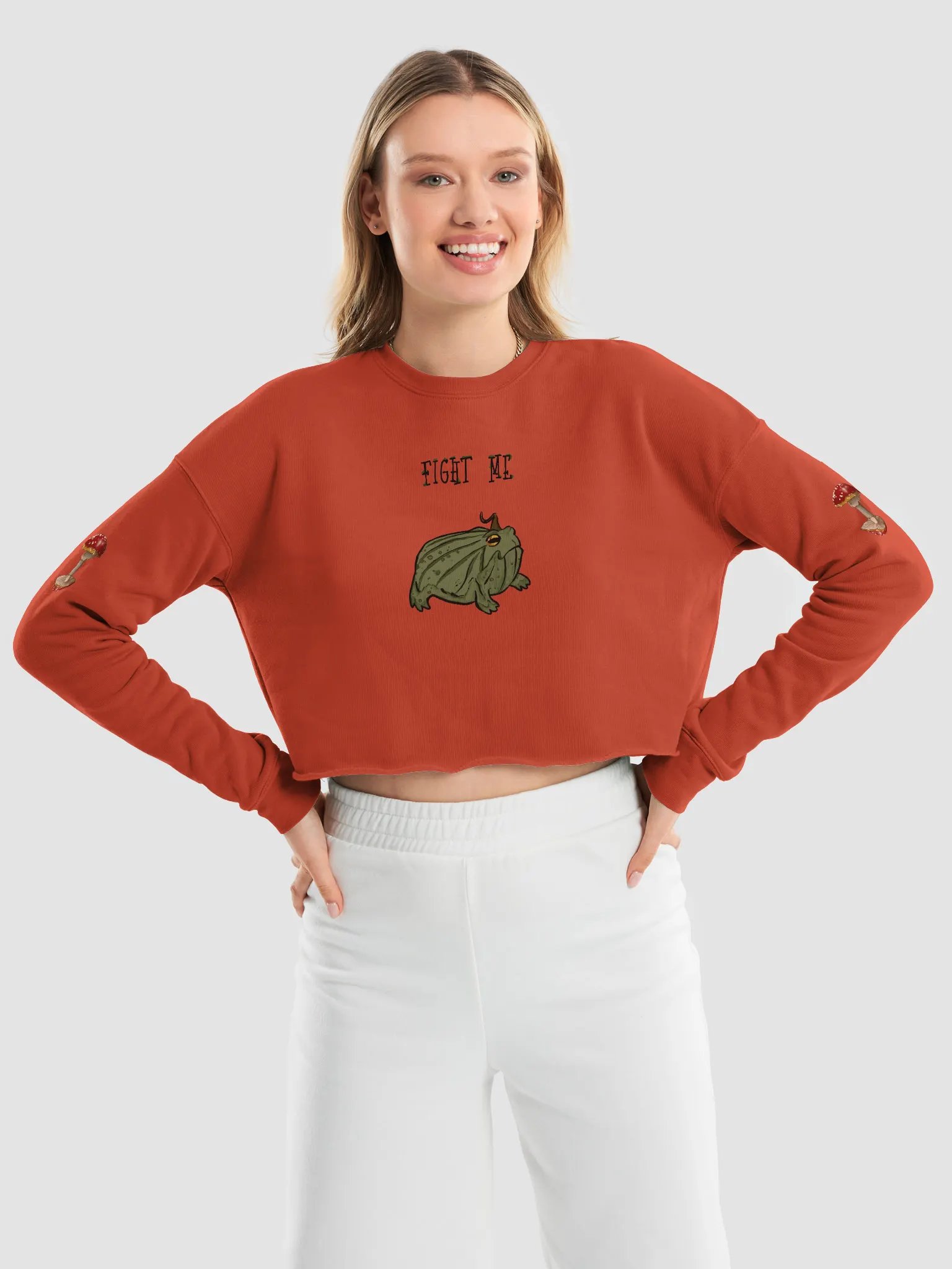 "FIGHT ME" Frog Crop Sweatshirt